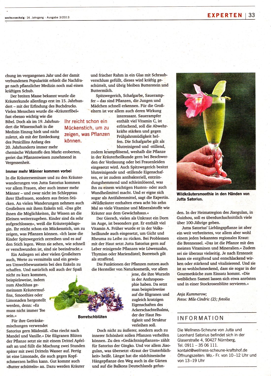 Preis 105 € - 90 Min. Jutta Satorius - Gärtnerin, staatlich anerkannte Kräuterpädagogin und Ernährungscoach IHK