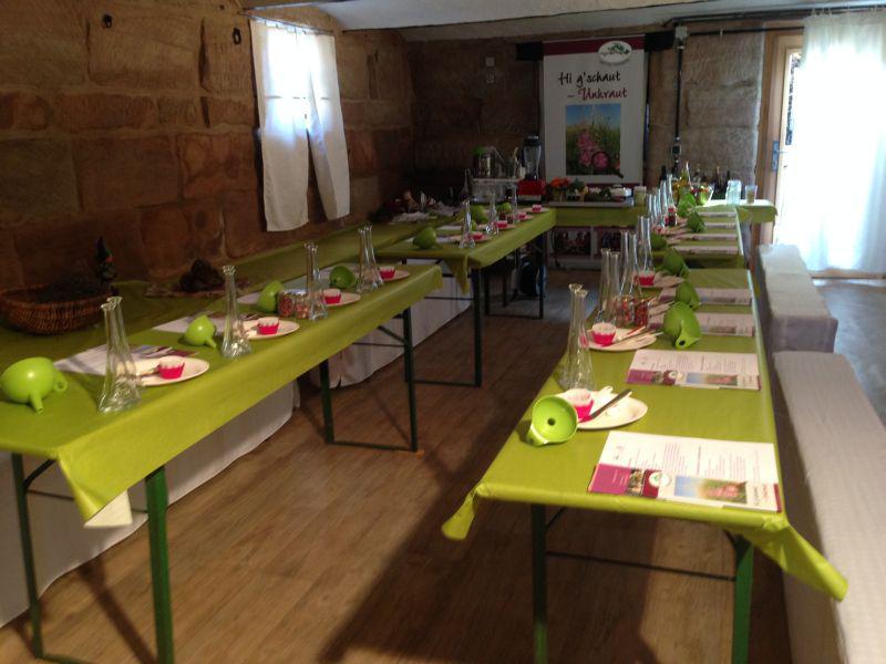 - Es gibt das Herzstück: den Scheunen – Raum, liebevoll renovierter Kuhstall von 1870
