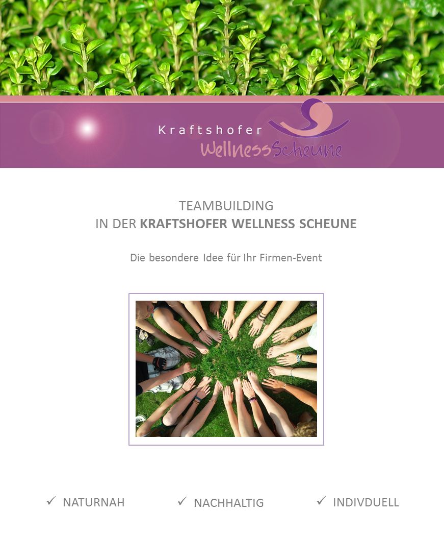 Die Kraftshofer Wellness-Scheune steht an einem traditionellen Ort der Kraft dort, wo die mächtige Wehrkirche noch heute Geborgenheit ausstrahlt, findet man einen Ruhepol inmitten der hektischen Welt. Der Ort ist umgeben von, abwechslungsreichen Gemüsefeldern des Knoblauchlandes, am Rande des Sebalder Reichswaldes.